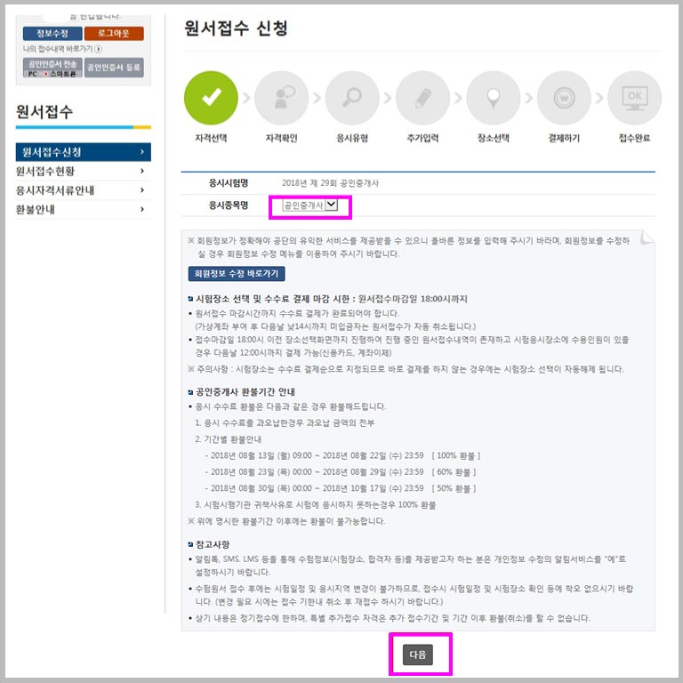 공인중개사 큐넷 시험접수 실제 화면 따라하기