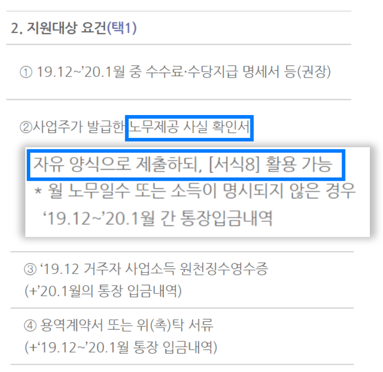 지원대상요건에 해당하는 다른 3~4가지 서류들 중에