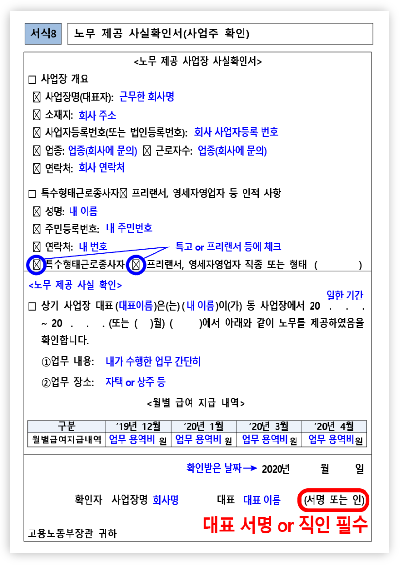 정부에서 제공한 노무제공사실확인서 준비가 가장 간편할 수도 있다.