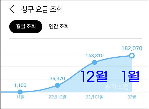 12월,1월 가스 사용량