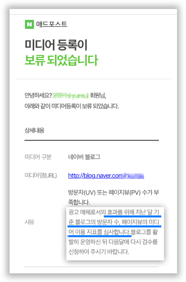 어찌보면 심사기준이 애드센스가 더 후한건가 싶을 정도다. 방문자수가 일주일만 확 증가된채로 유지되어도 애드센스는 바로 승인을 해주는 반면, 애드포스트는 이전 한달의 방문객을 본다고 하니.. 나는 7월초에 다시 한 번 도전할 생각이다.