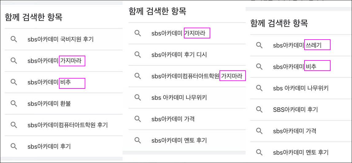 구글에 SBS아카데미를 검색하면 이렇게나 안 좋은 연관검색어가 많이 뜬다.