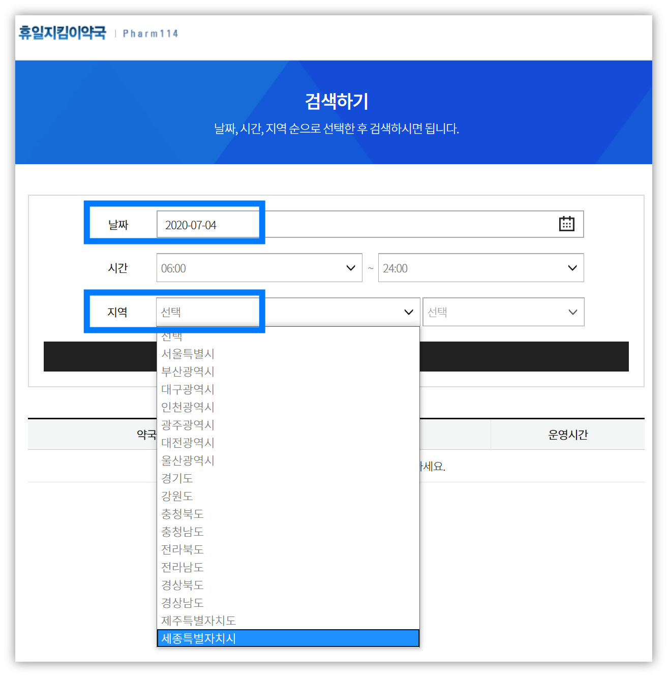 아래 '휴일지킴이약국' 홈페이지에서