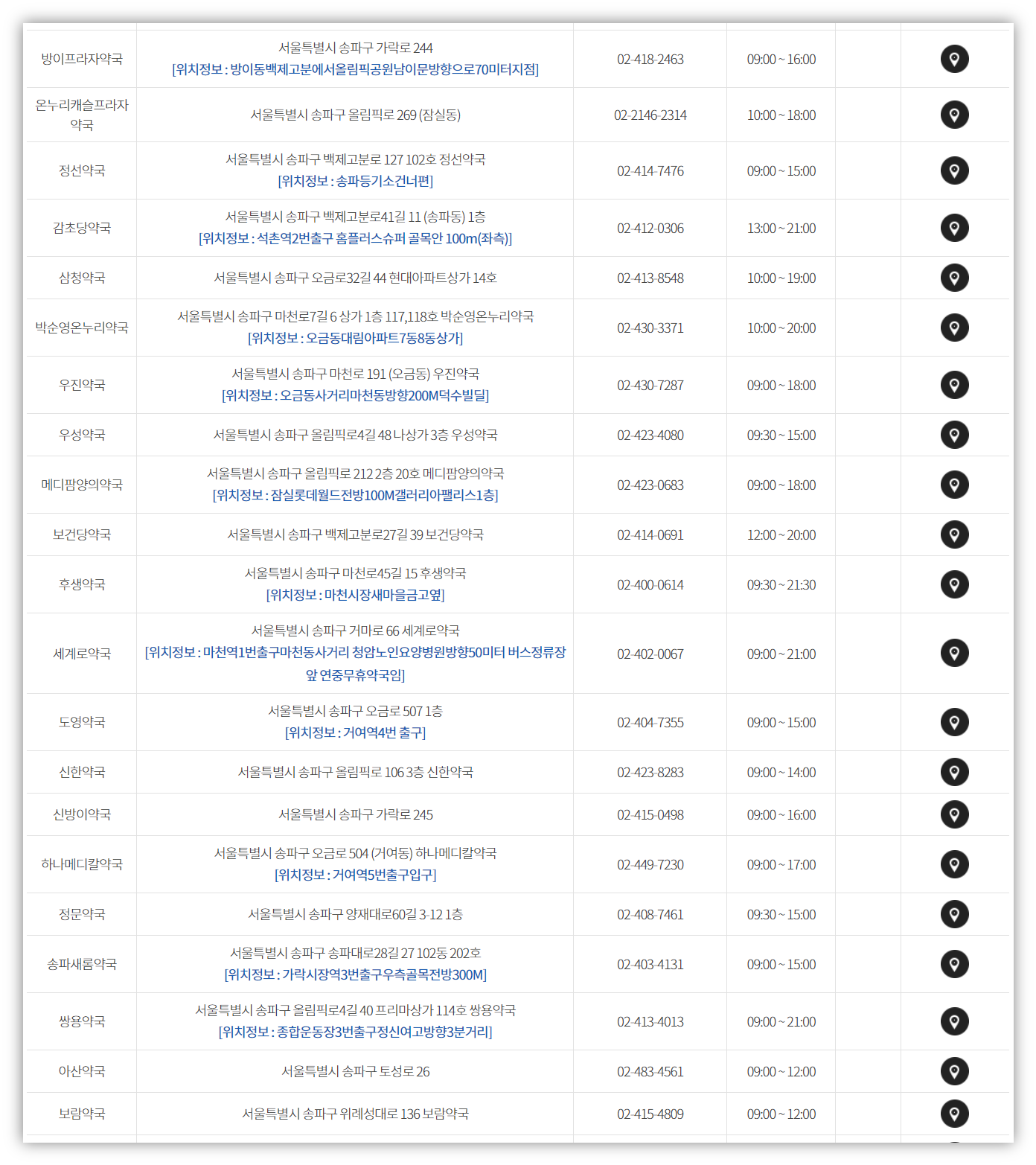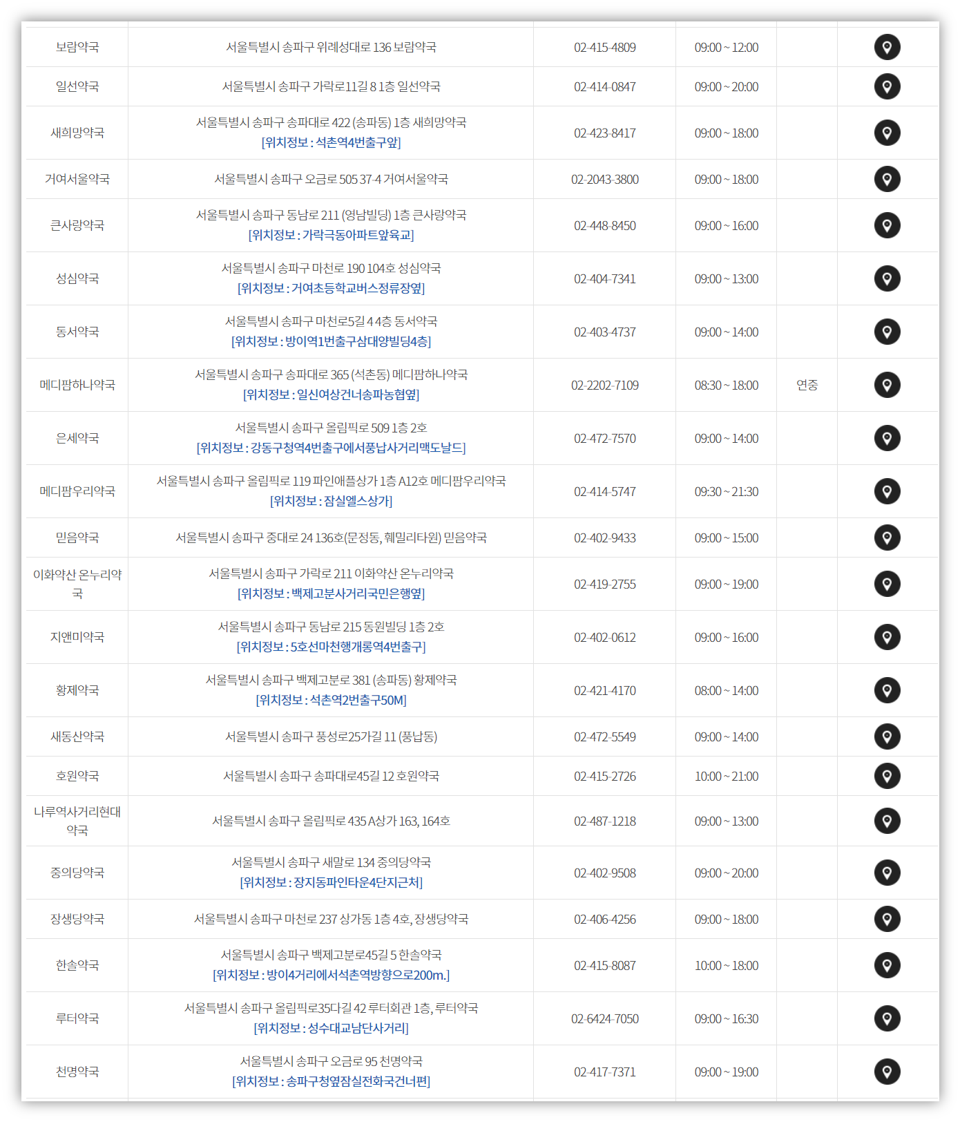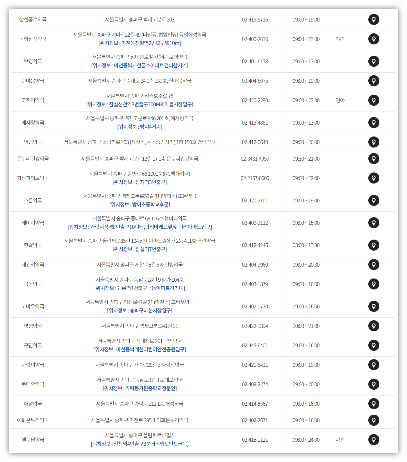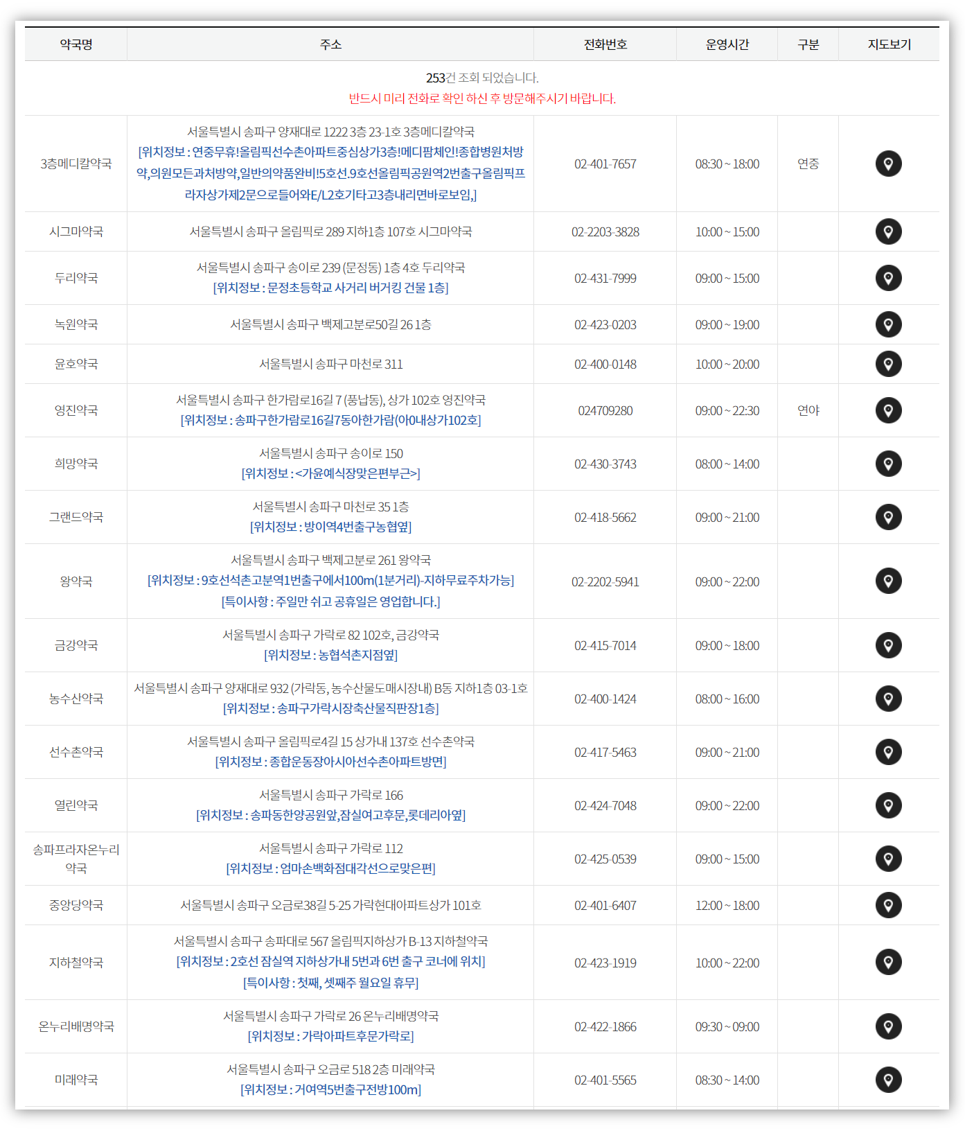 바로 그날 문 연 약국 리스트를