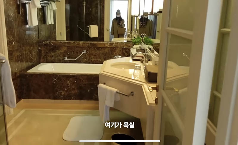 욕실이 엄청 럭셔리하고 반신욕 가능한 욕조가 있다. 물론 5성급 호텔답게 욕조에 걸맞는 입욕제도 준비되어 있다.