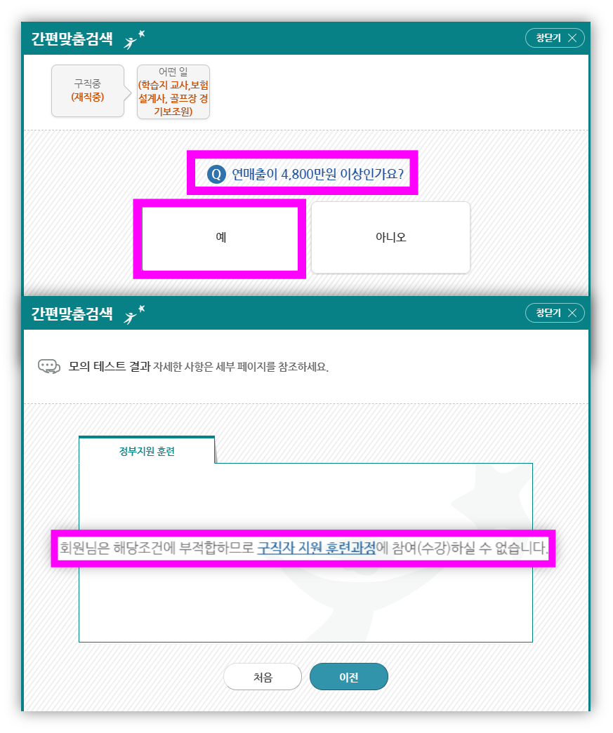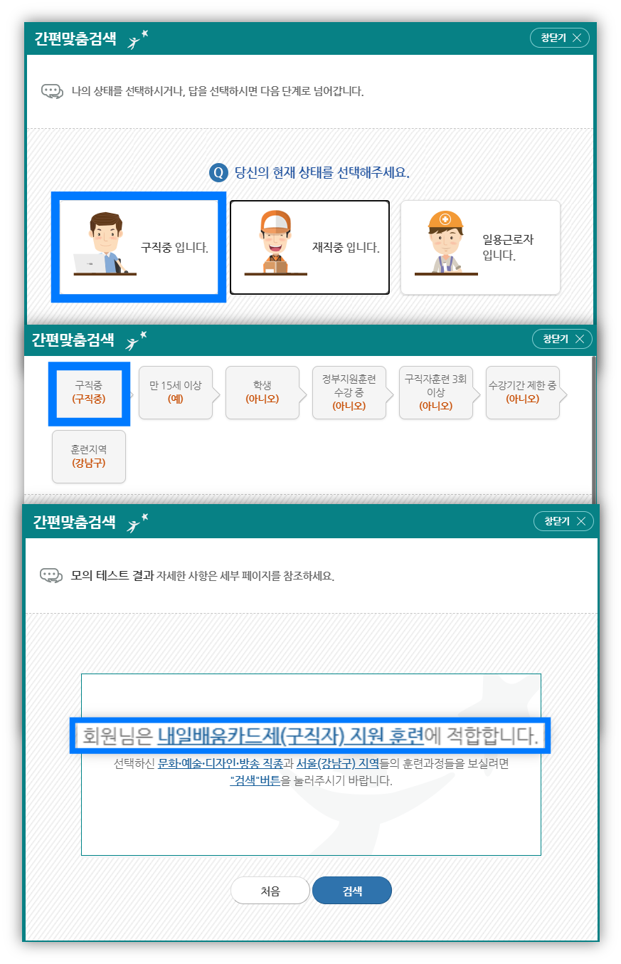 국민내일배움카드 신청할 자격이 된다고 나온다.