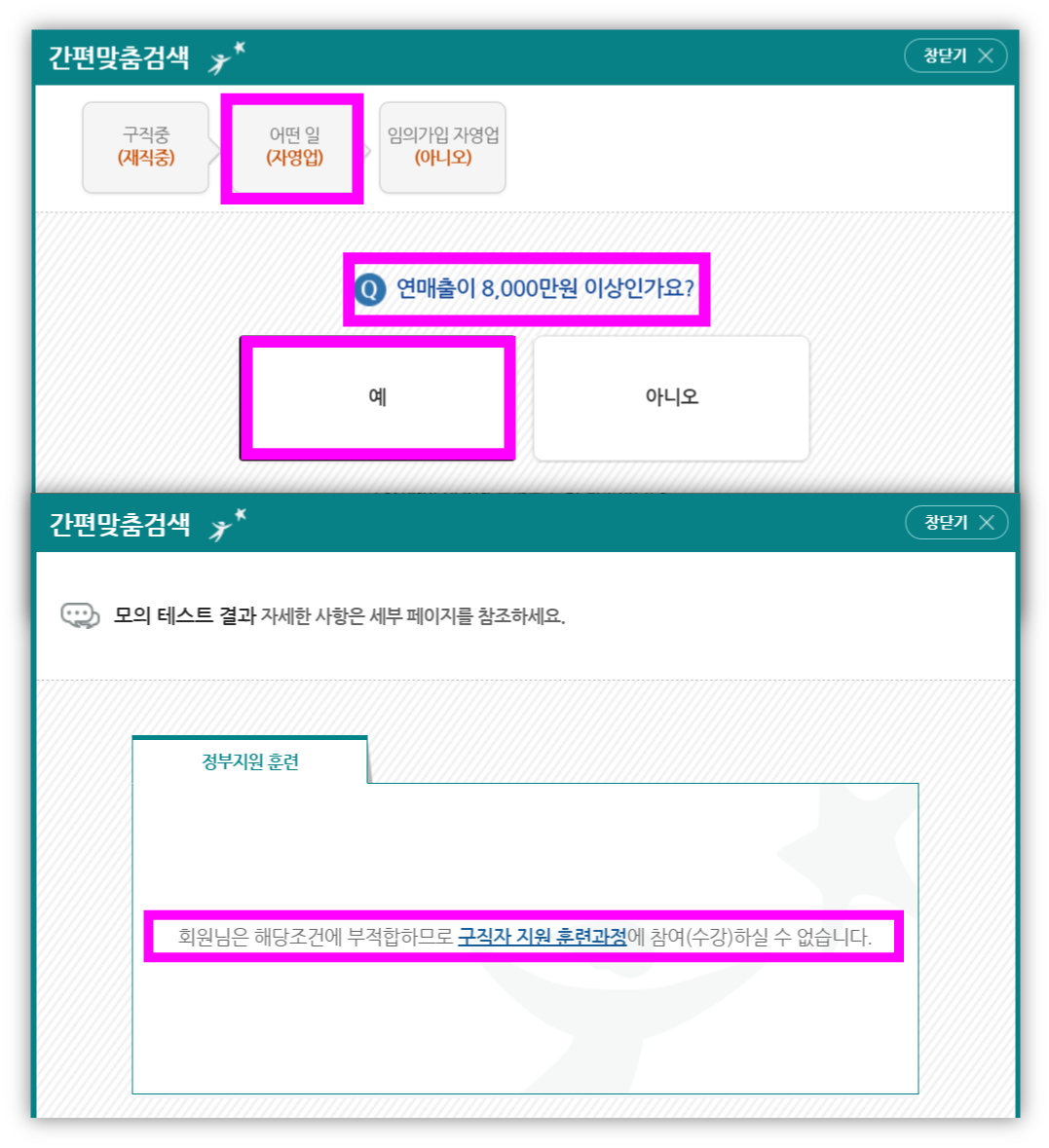 구직자는 매출(소득) 제한 등이 없다.