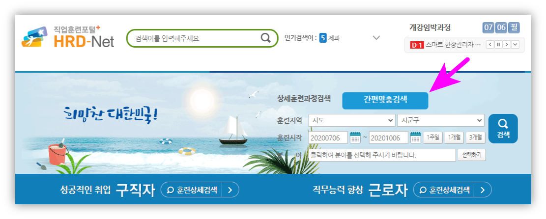 홈페이지 상단 [간편맞춤검색] 클릭