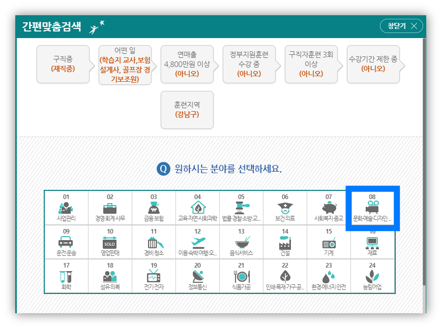 본인이 수강하고 싶은 분야 선택