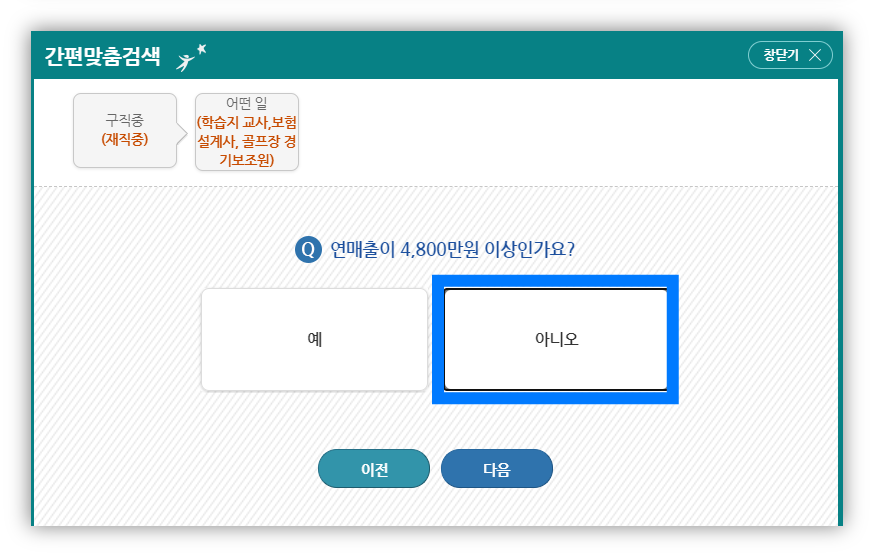 연 매출 4800만원 이상 '아니오'클릭
