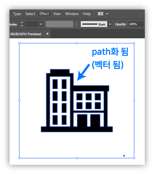 이미지 트레이스 버튼을 누르면 픽셀에 불과했던 이미지가 벡터화가 된다.