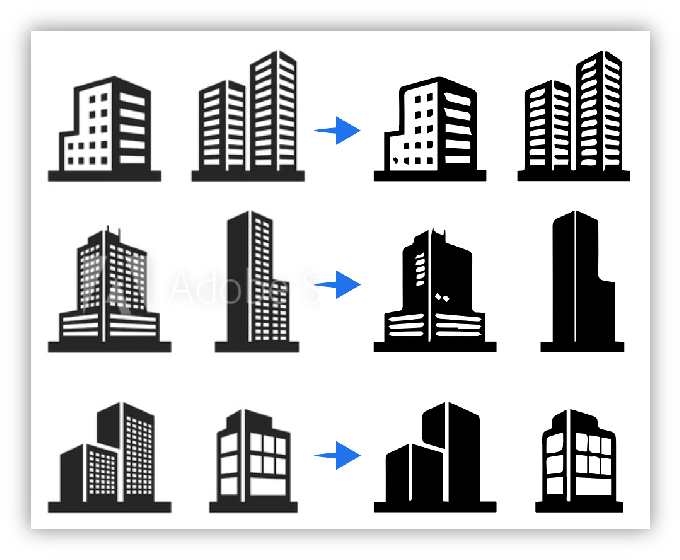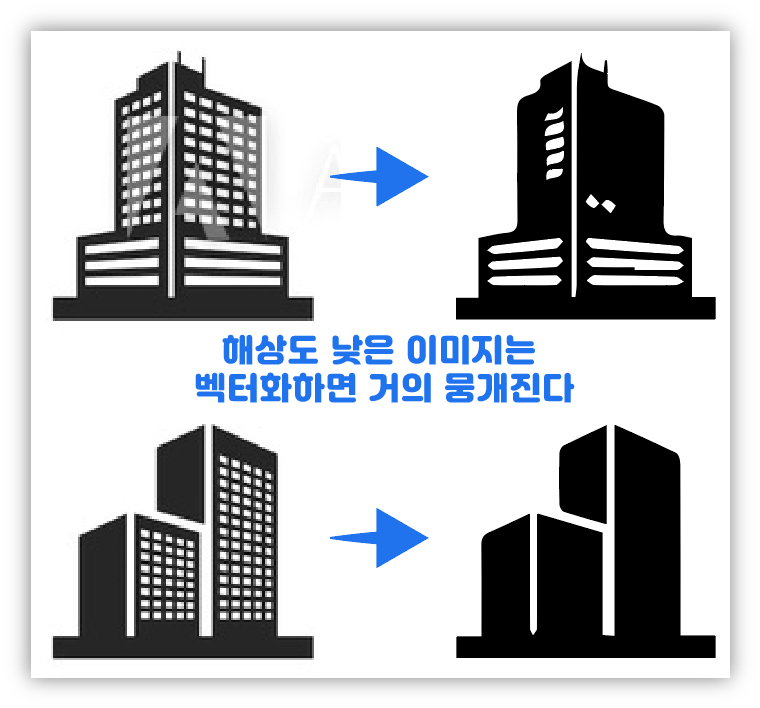 한 이미지에 여러 아이콘이 들어있는 해상도가 좀 낮은 이미지를 가져와서 벡터화하면 오른쪽 느낌으로 뭉개지는 경우가 많다.