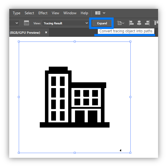 이미지 트레이스로 벡터화 시킨 이미지를 선택한 상태에서 상단 버튼이 또 바뀌는데 (역시 이미지 선택한 상태에서만 보여진다) 익스팬드 Expand 버튼을 누르면 벡터화 된 이미지를 편집할 수 있는 상태가 된다.