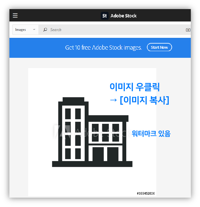 맘에 드는 유료 아이콘 이미지를 클릭하면 스폰서 사이트인 adobe stock사이트 창이 하나 더 뜬다. 여기서 콕 찝었던 유료 아이콘 이미지를 하나 클릭하자.