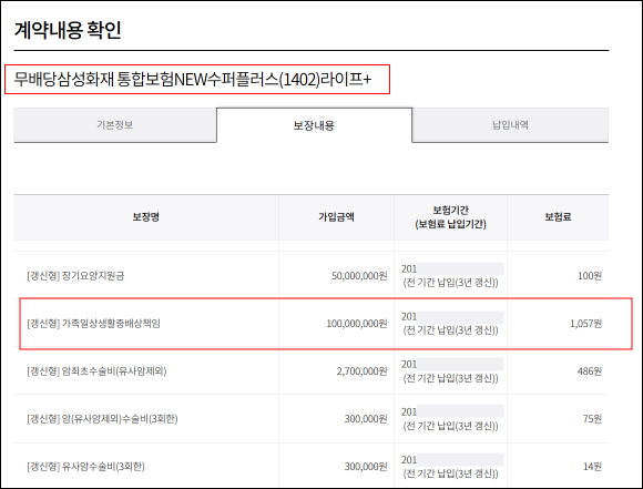 가입한 보험 : 무배당 삼성화재 통합보험NEW수퍼플러스 라이프+