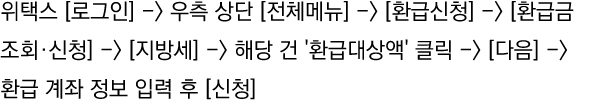 자동차세 환급 신청은 이택스가 아닌 위택스 wetax에서 할 수 있고 환급 신청 경로는 아래와 같습니다.