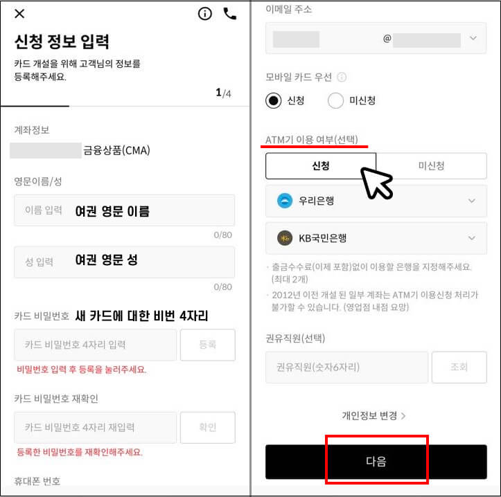 이제 진짜로 CMA 체크카드 신청해볼게요.