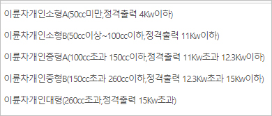 그 이상의 이륜차는 말할 것도 없이 이륜차보험 의무가입대상이구요.