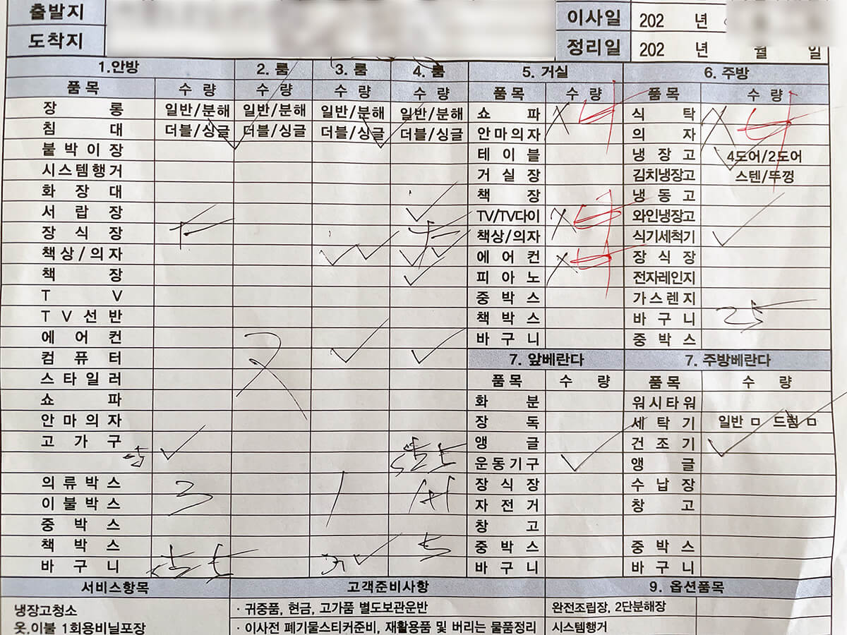 - 사다리차 포함 여부 확인 (보통 비용 추가 됩니다)