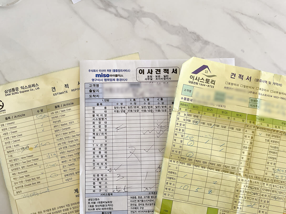 이사를 코앞에 두고 이사 업체 3곳에서 비교 견적을 받아봤습니다. 전 30대 후반 워킹맘인데요, 온라인에서만 최저가 비교견적을 받아보니 직접 방문 견적 요청을 받아봐야 더 정확할 것 같다는 느낌이 들더라고요. 그래서 방문 견적을 3곳에 신청했습니다. 이사 견적 낼 때 최소한 3군데에서는 받아보라는 의견이 많더라고요.