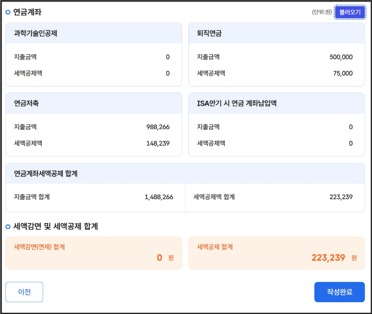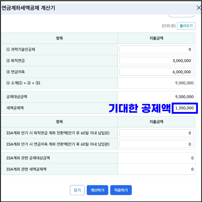 연금계좌세액공제 계산기 입력 방법