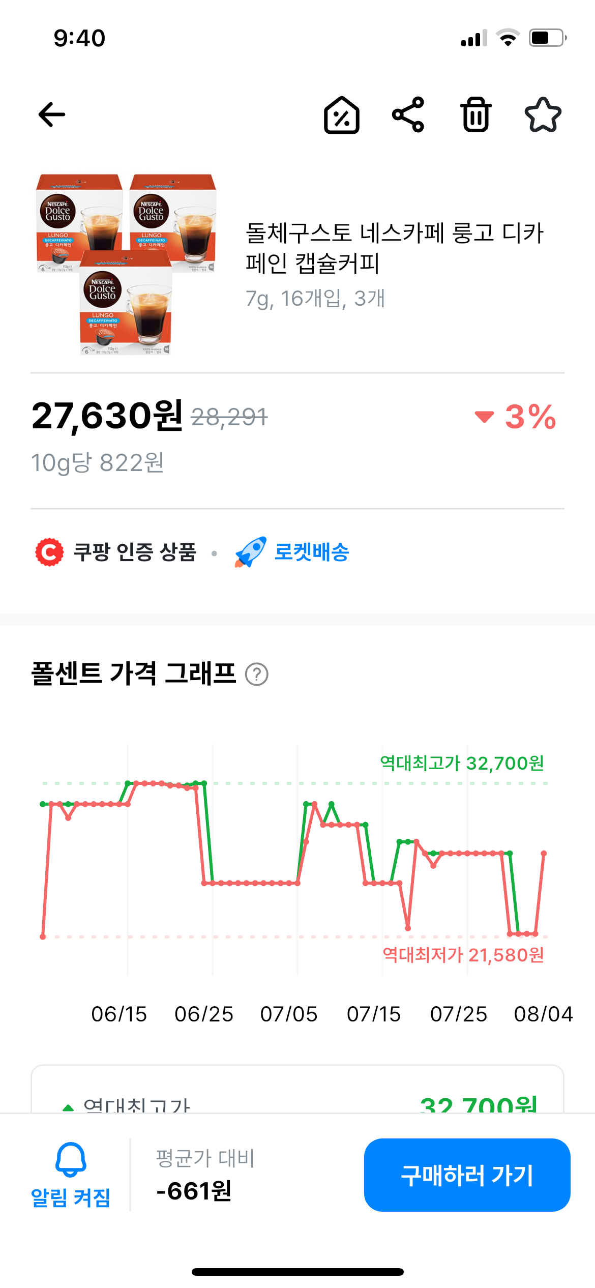 쿠팡 가격 변동