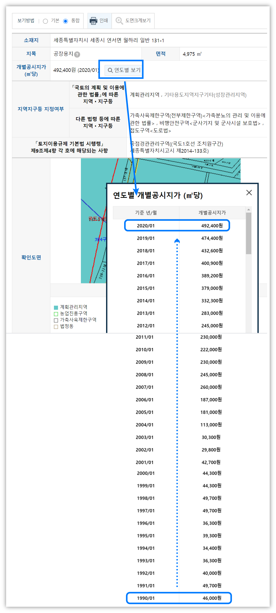 PC버전에서 과거 공시지가 조회해보기