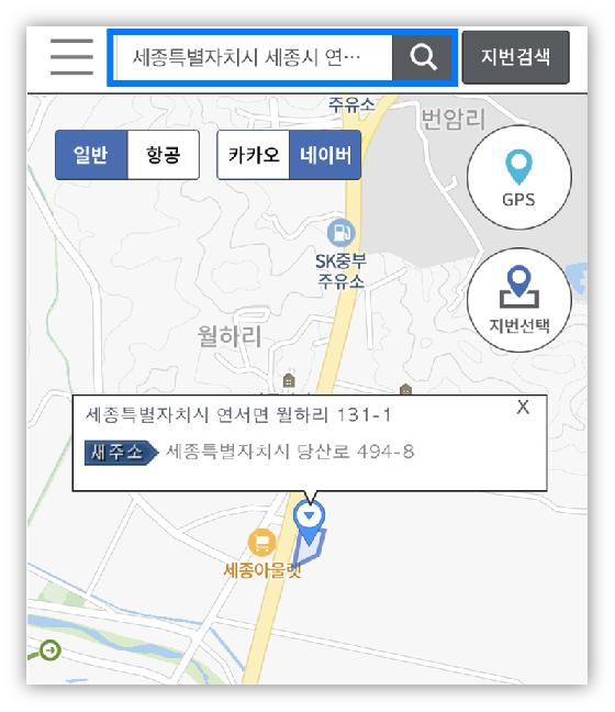 주소 (지번/ 도로명) 입력