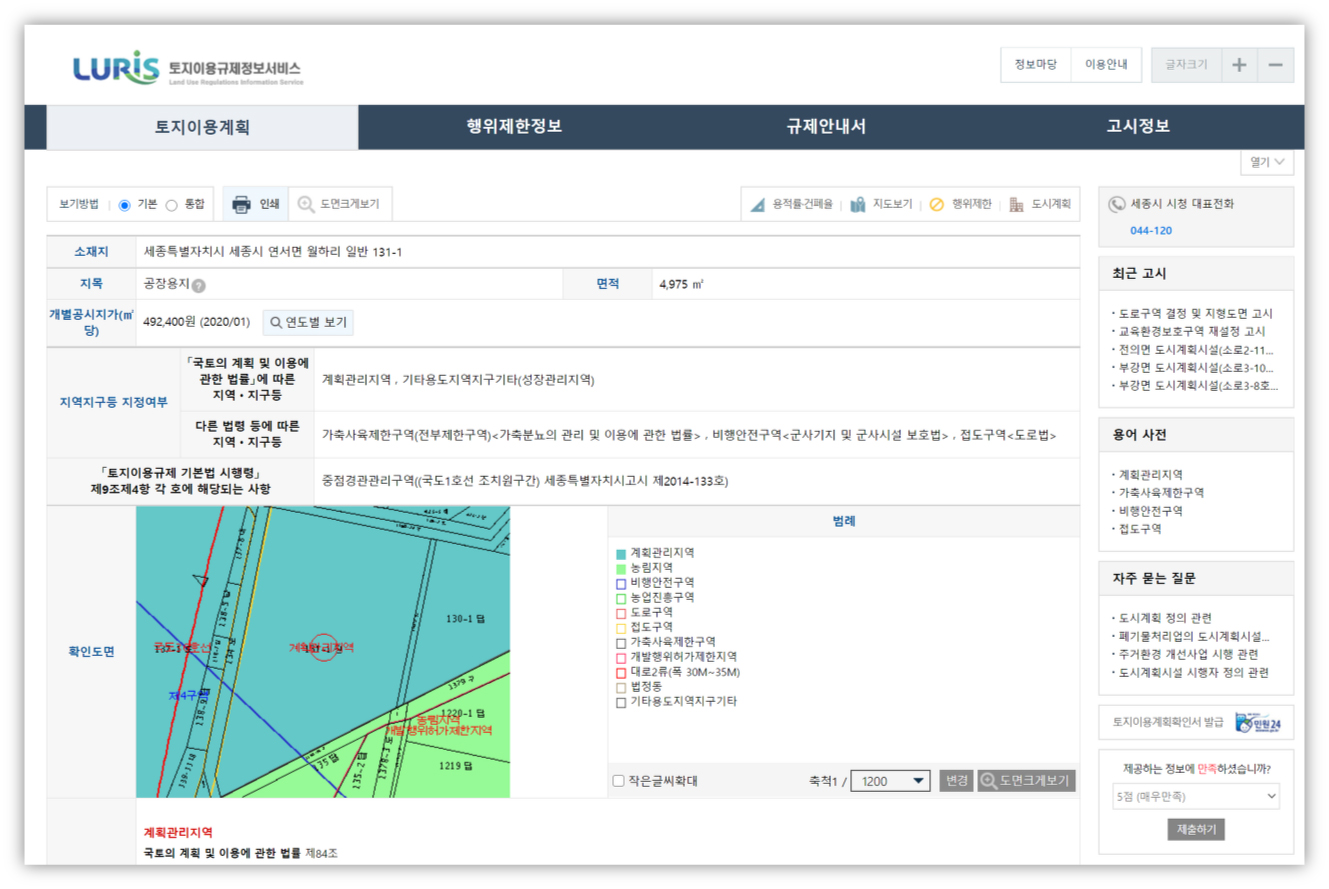 - 토지이용계획안 - LURIS (루리스, 토지이용규제정보서비스)