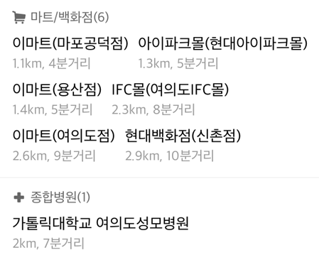 더 큼직한 브랜드 마트가 주변 편의시설로 나온다.