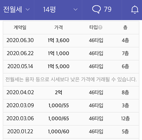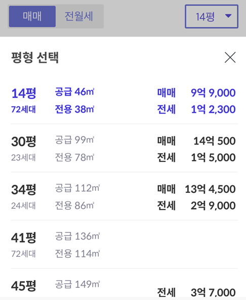 1 평형별 매매, 전세, 월세가를 한 눈에