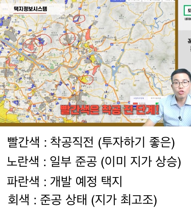 노란색 : 일부분 택비 조성 준공 완료 (지가가 이미 오른 상태)
